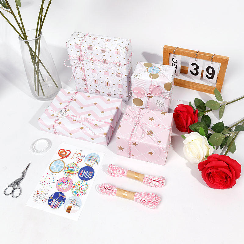 New Design Valentine's Day Wedding Pink Gift Wrapping Foil Paper 43*300 cm Roll Birthday Wrap Paper Packaging