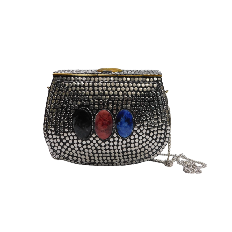 Nouveau tissu de velours de conception avec le sac à main Ambrodry pour le sac polyvalent de velours de conception de dame avec la belle pierre multicolore de perle