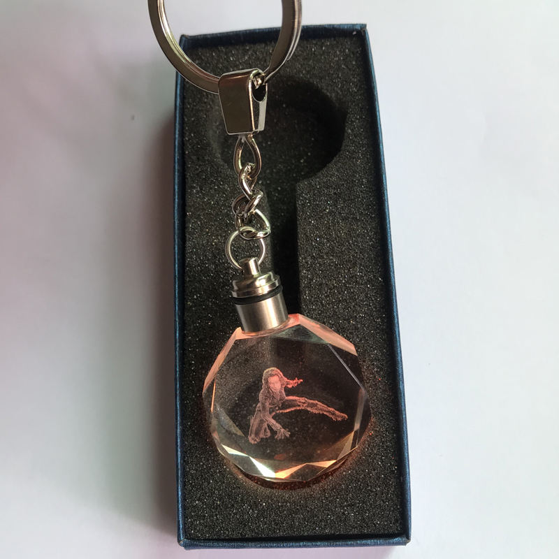 Porte-clés en cristal 3D gravé au laser avec lumière LED