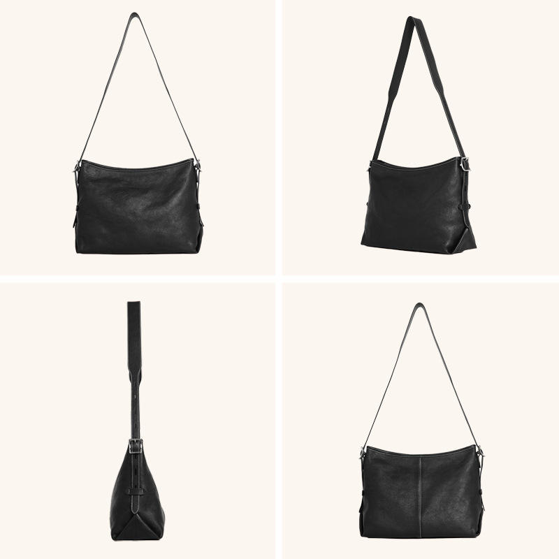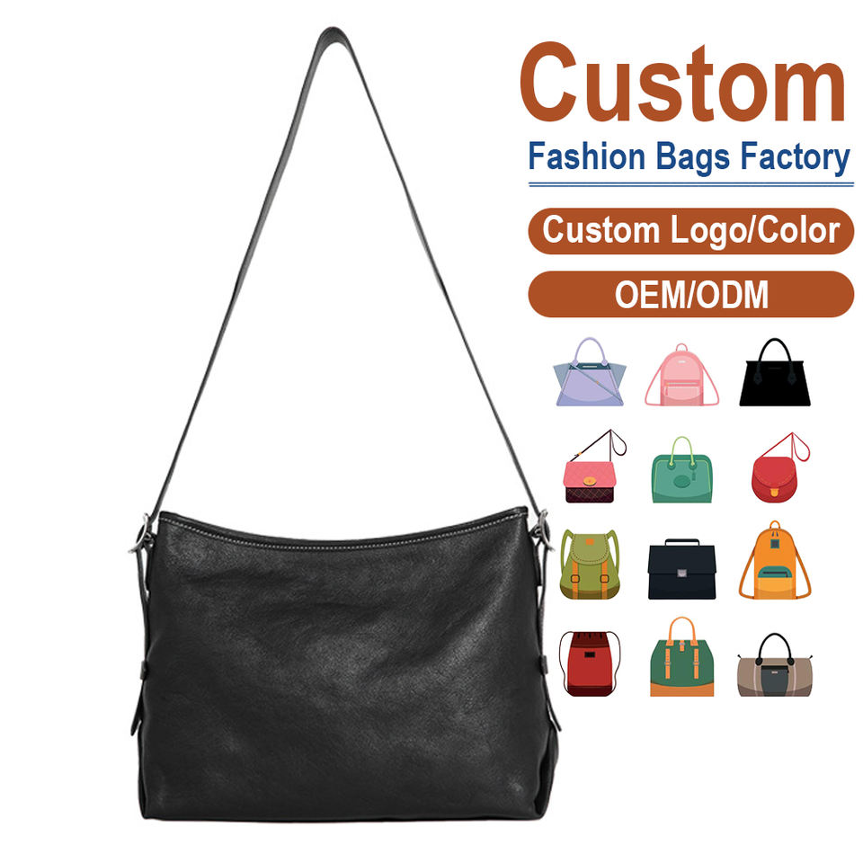 Nouveau design vintage, sac hobo bandoulière personnalisé avec logo de marque, grande capacité, unisexe, en cuir noir pleine fleur, avec chaînes, hiver