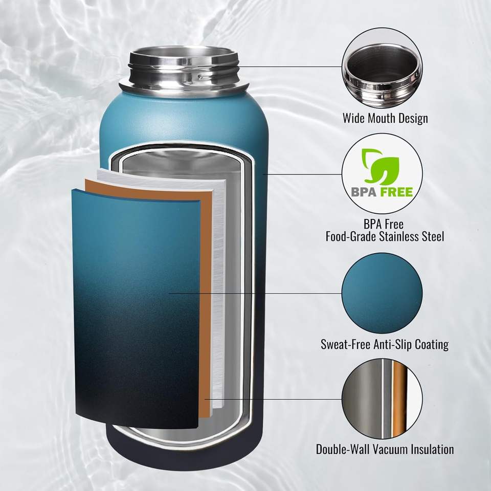 Bouteille d'eau au design innovant, gourde en acier inoxydable, bouteille de sport avec poignée et couvercle, 12oz 32oz 40oz 64oz