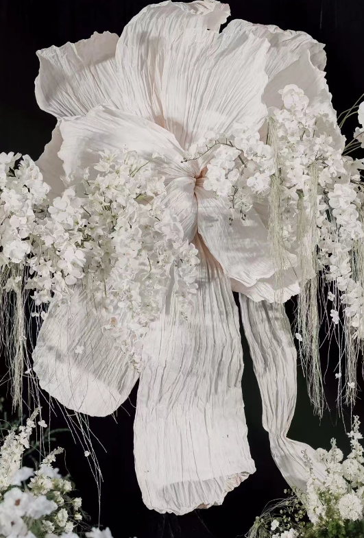 Nouvelle conception de toile de fond de mariage, décoration murale suspendue au plafond, fleur géante en papier, soie, organza, installation artistique, décoration de scène, toile de fond