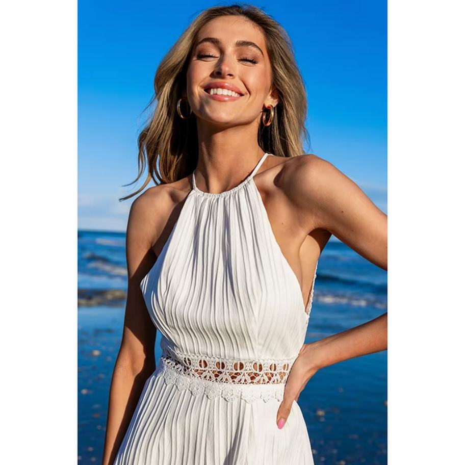 Nouvelle combinaison blanche à col halter, coupe droite, dos nu en dentelle et à nouer