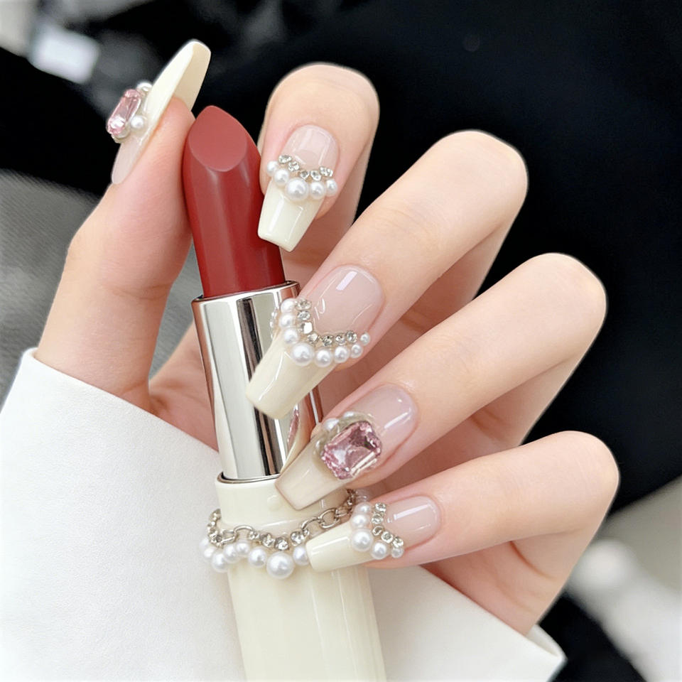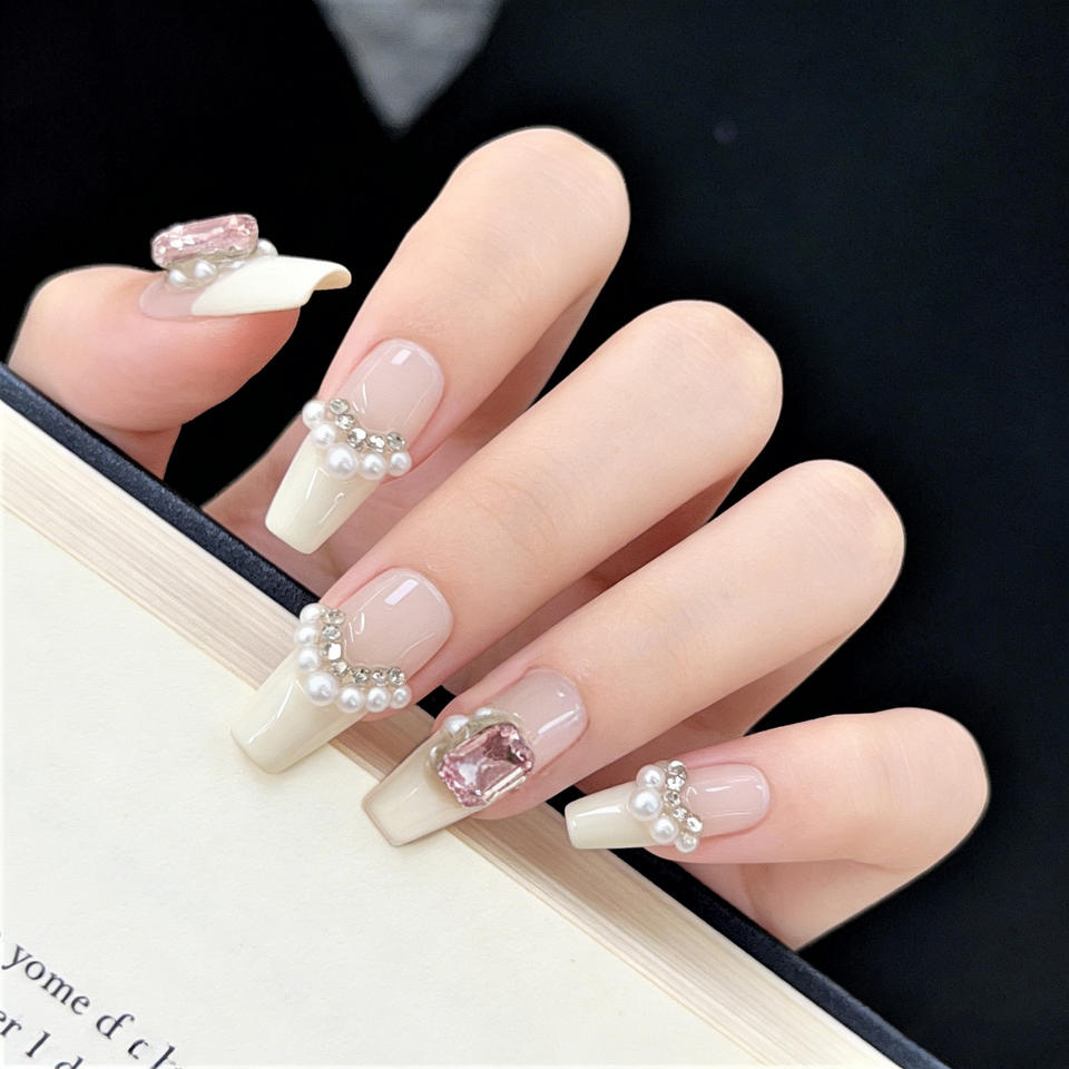 Nouvelle conception, vente en gros, ongles press-on 100% faits à la main, prix bas, nouveaux ongles avec strass, ongles artificiels pour filles
