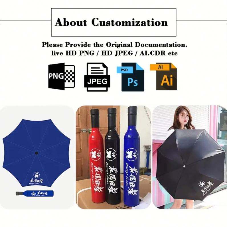 Nouvelle conception, vente en gros, parapluies publicitaires personnalisés imprimés en forme de bouteille, parapluie bouteille de vin