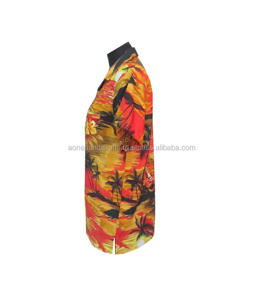 Nouveau design en gros Polyester mode imprimé été hawaïen homme styles 100% polyester tissu coupe poche chemise de plage