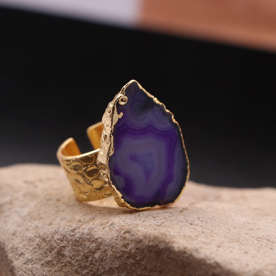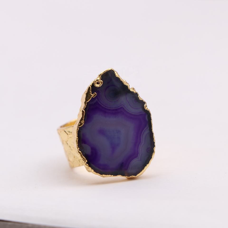 Nouveau design bijoux femme anneau réglable tranche d'agate naturelle druzy fait à la main pierre unique anneaux de pierres précieuses pour femmes anneau bijoux
