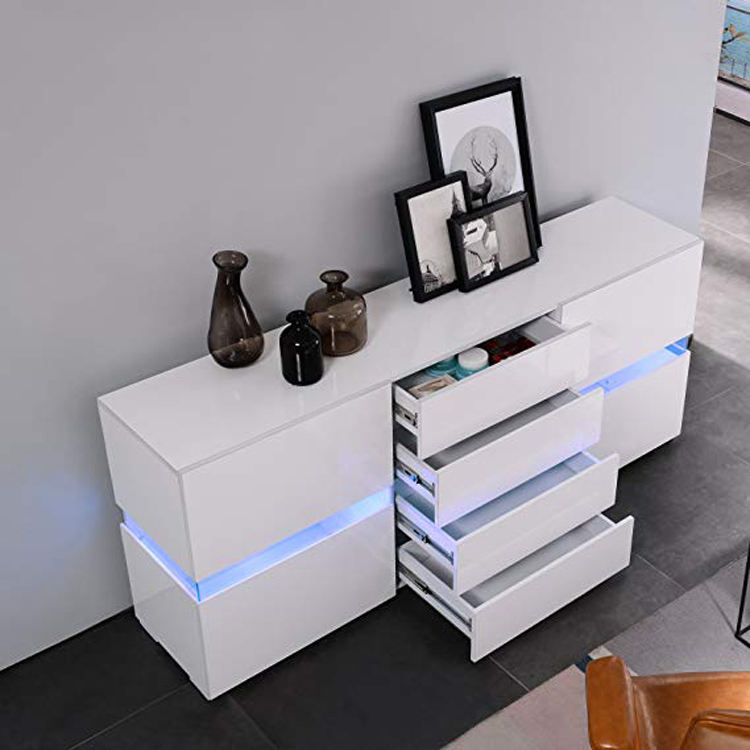 1 armoire latérale à 2 portes et 4 tiroirs en bois, rangement brillant pour vaisselle, nouveau design