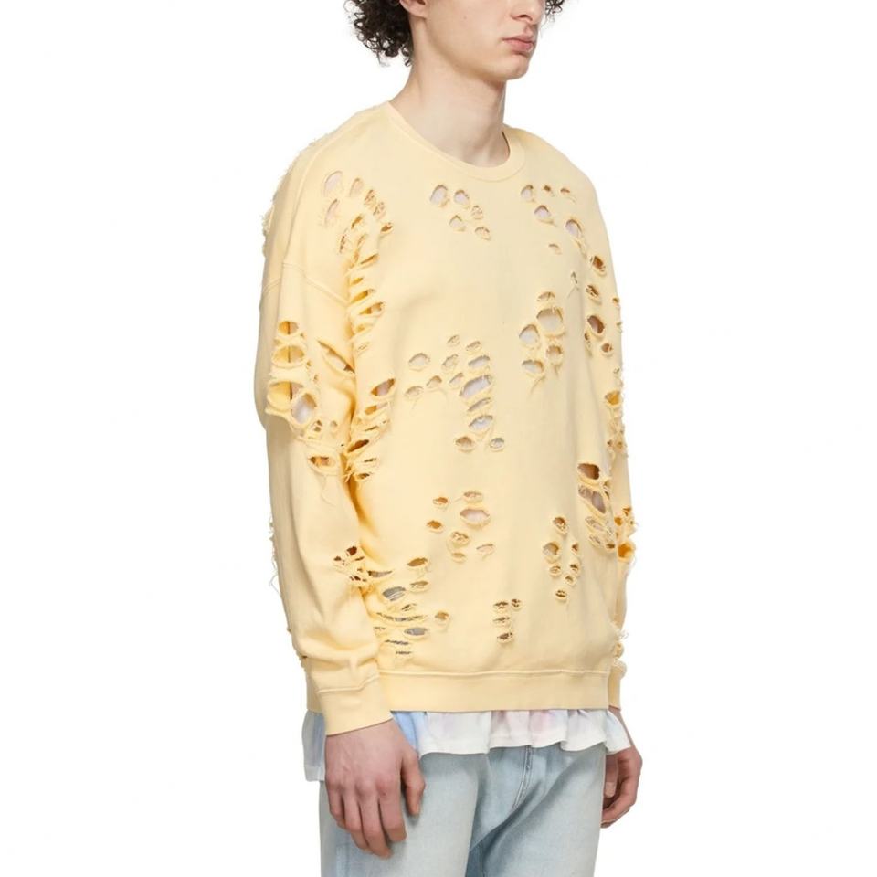 Pull en coton surdimensionné jaune super délavé, nouveau design pour hommes