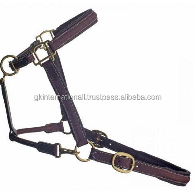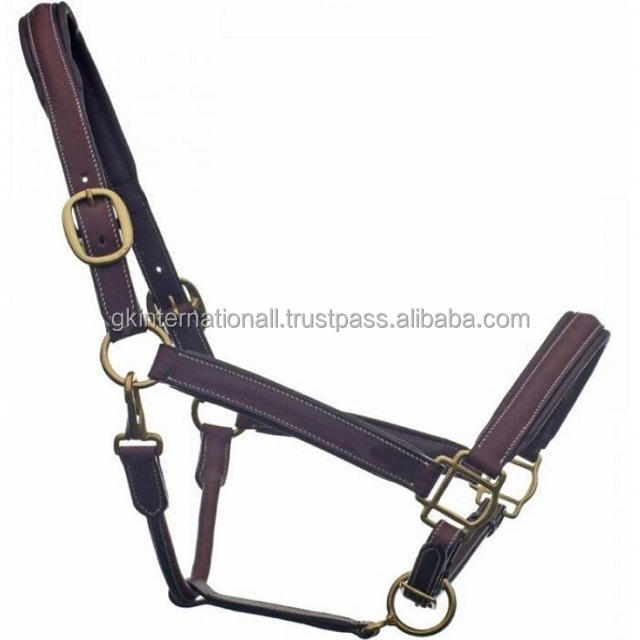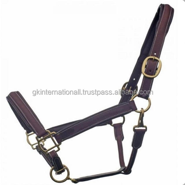 Nouveau design durable bord cousu cuir rembourré licou disponible en cuir véritable noir ou marron boucle et anneau en laiton