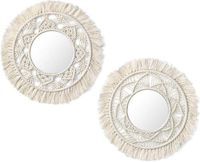 Miroir mural en macramé de nouveau design avec un design complexe et une texture de corde naturelle, idéal pour la décoration intérieure de style bohème
