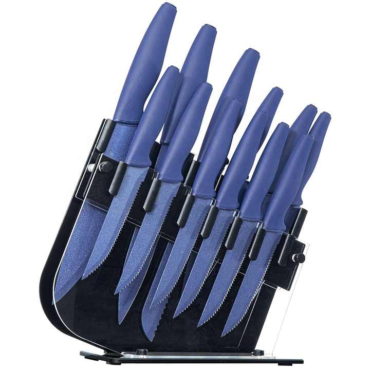 Xyj couteaux de cuisine antiadhésifs, manche en pp couteau suisse royal set de couteaux avec support