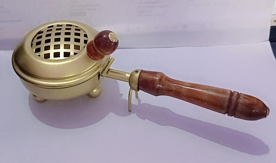 Brûleur à Bakhoor en laiton pur de nouvelle conception avec poignée en bois, pièce unique, brûleur à encens avec couvercle, design de découpe en étoile, couleur dorée