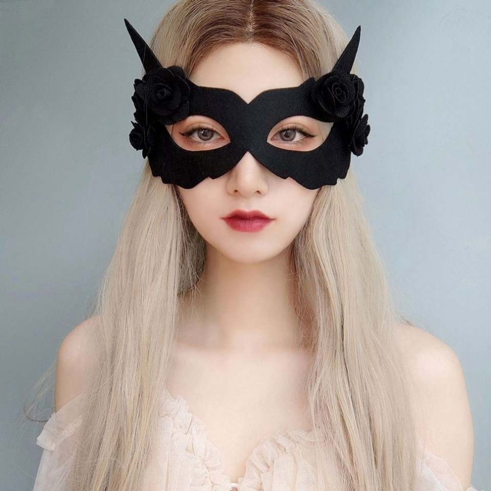 Nouveau conçu Halloween Cosplay mascarade fête Sexy fleurs noires décorations masque fille masque noir