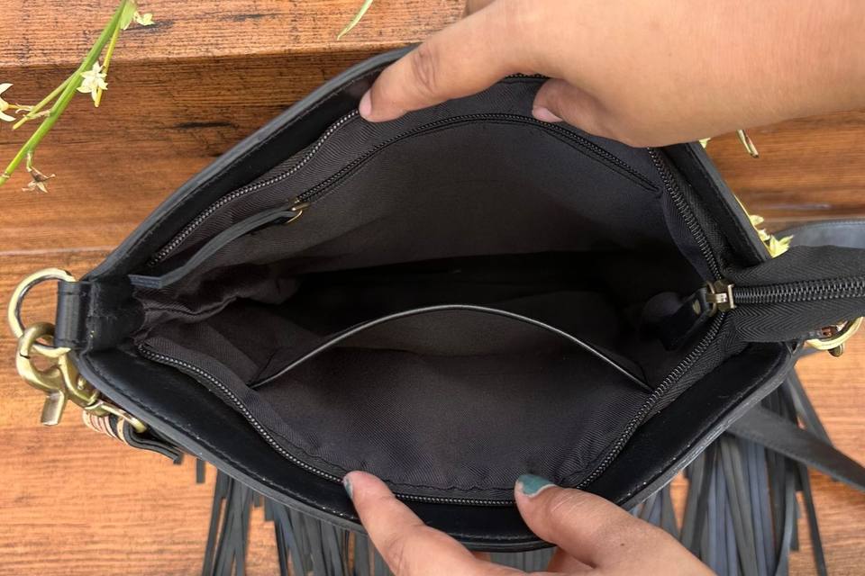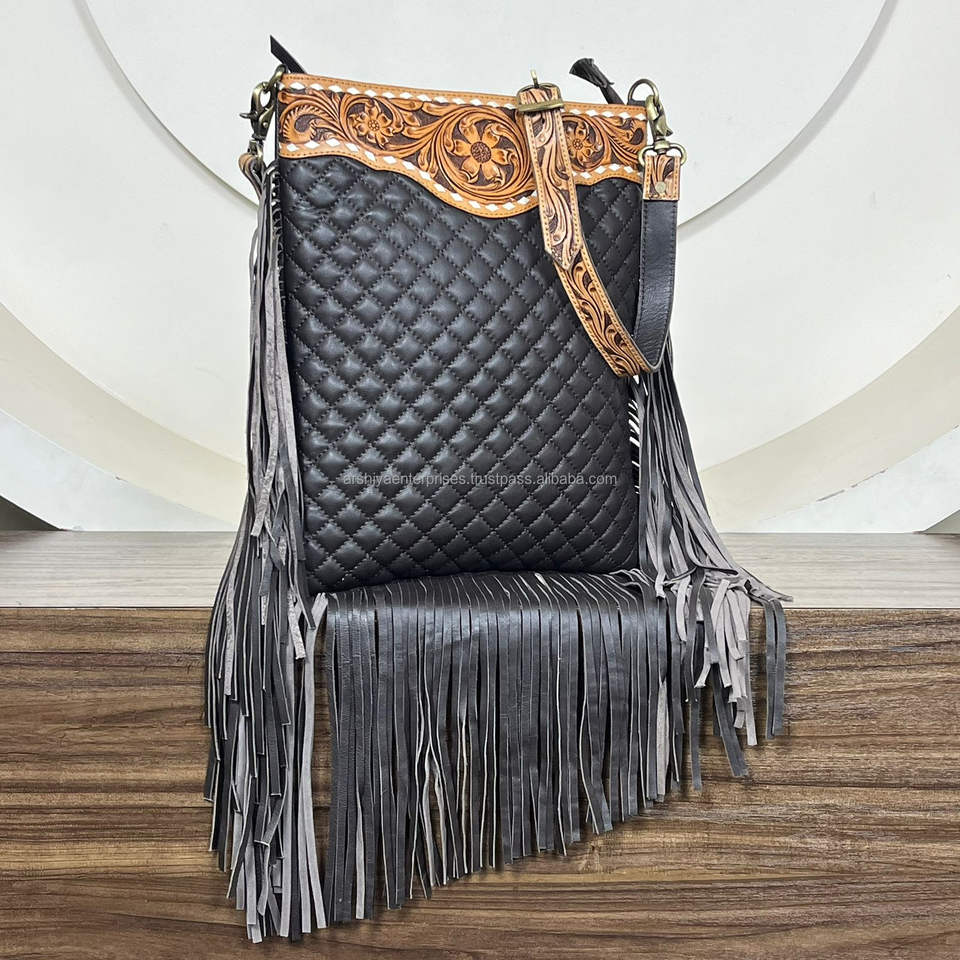 Nom du produit:Sac bandoulière à franges avec motif losanges travaillé à la main