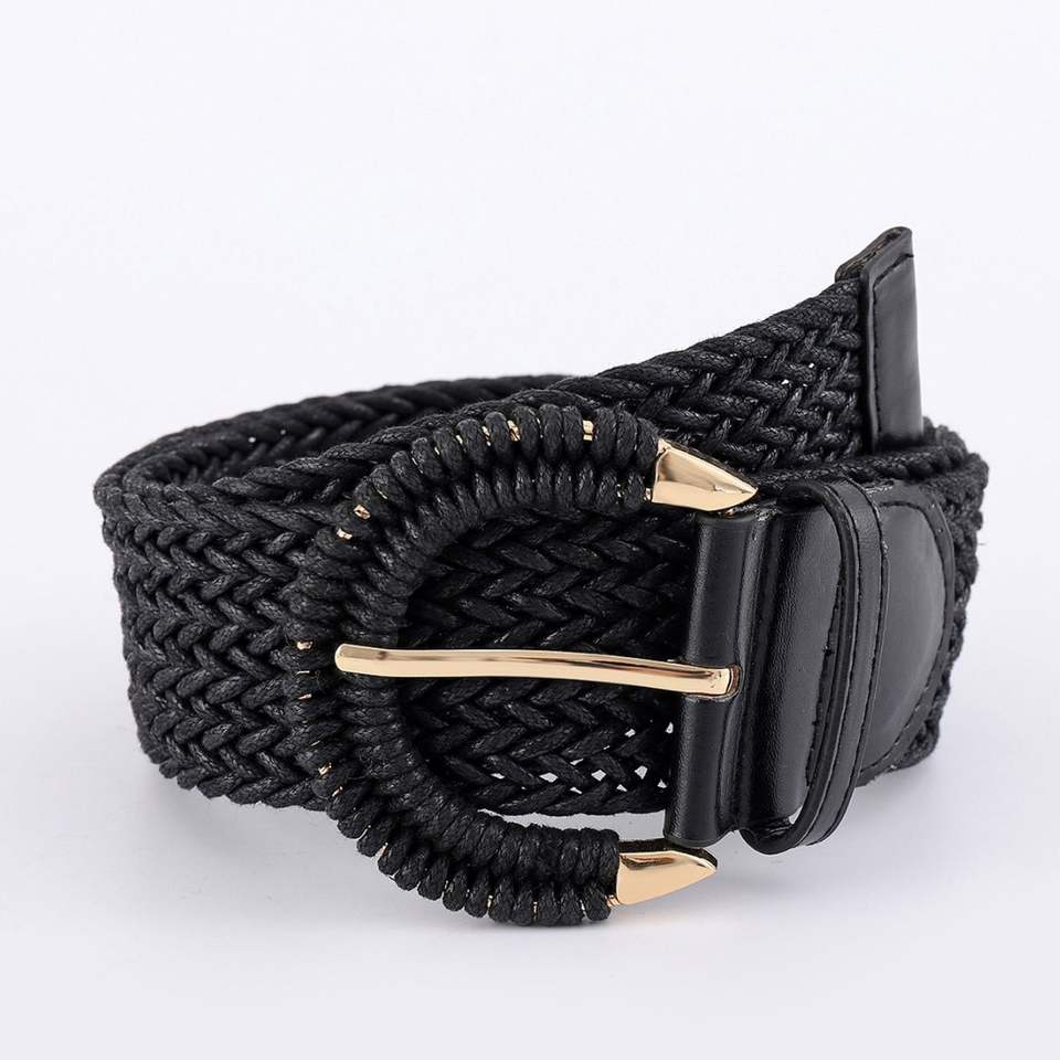 New Designer Boho Handmade Girls Belt Natural Color Double Loop with Alloy Buckle Braided Elastic PP Straw Hand Knitted