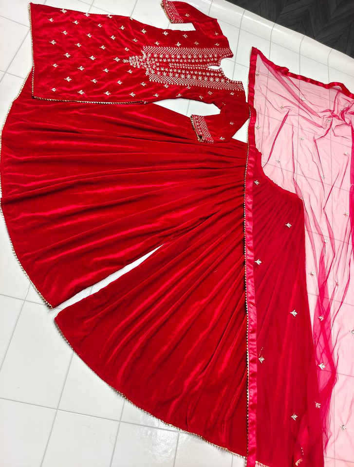 Nouvelle Collection Designer Top Avec Palazzo Et Duppta Ensemble 3 Pièces