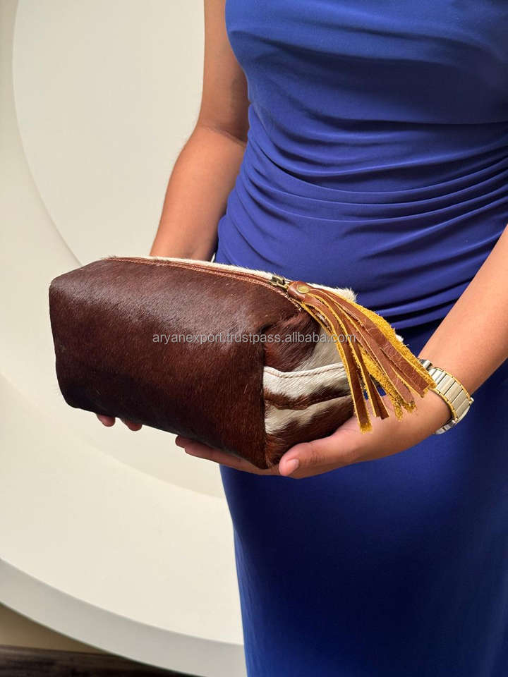 Genuine Hair On Cowhide Leather Tassel Toiletry Bags