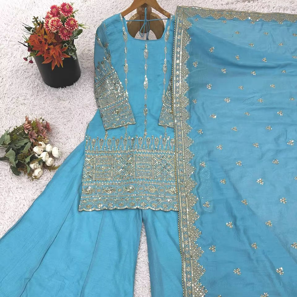 Nouvelle tenue Sharara en chinon brodée par des designers, avec des broderies de sequins, entièrement cousue avec un travail de broderie lourd et élastique