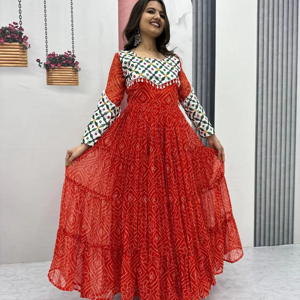 Nouveau tissu Faux Georgette de Collection de robe de créateur avec travail Gamthi et travail de dentelle Kodi pour les femmes vêtements de Festival