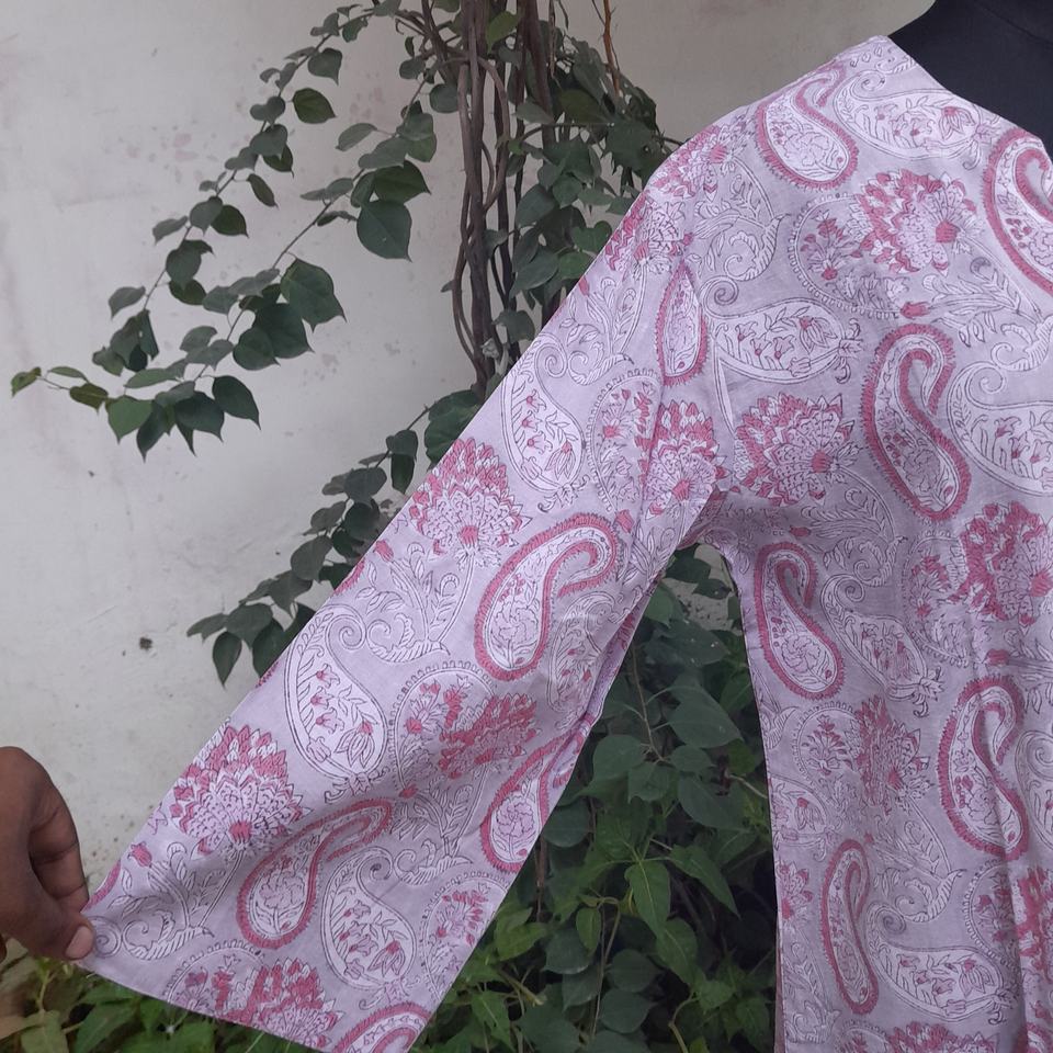 Nom du produit:Nouvelle robe tunique en coton imprimée à la main au bloc par un designer