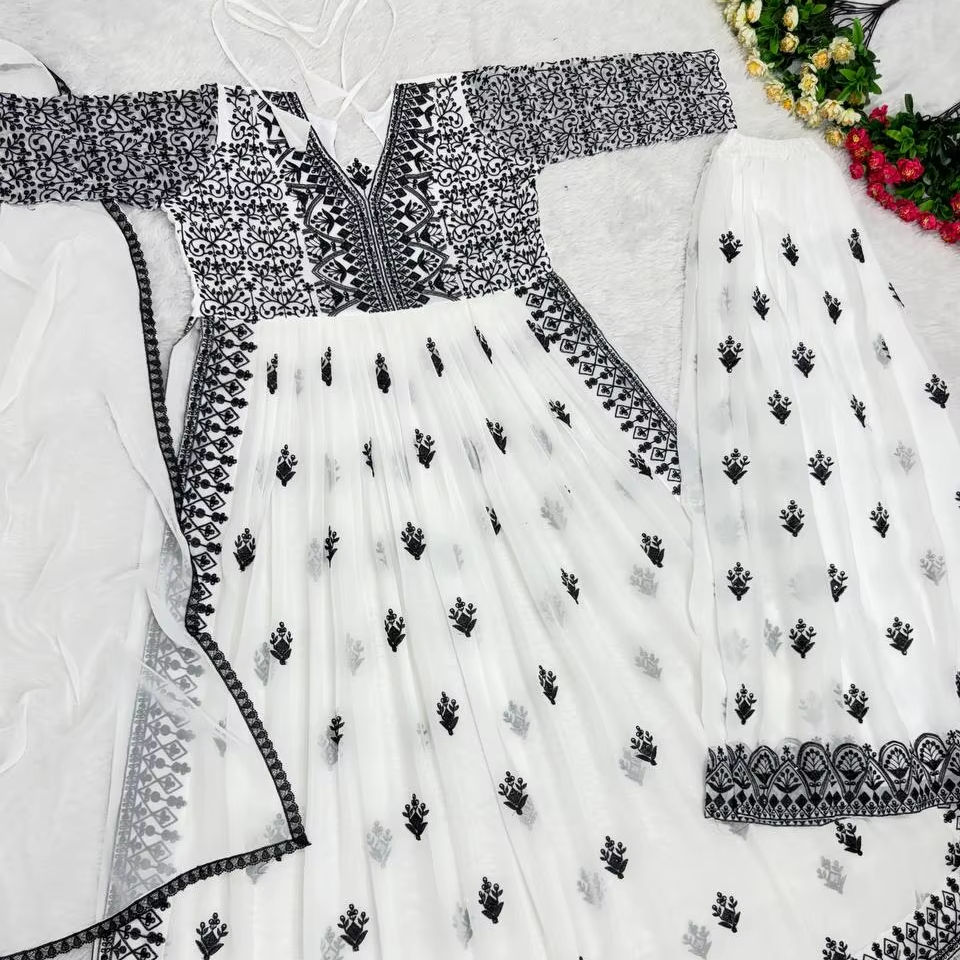 Nouveau Top fantaisie en soie chinon lourd de créateur-Dupatta entièrement cousu Sharara Style traditionnel fête porter Salwar Kameez lancement