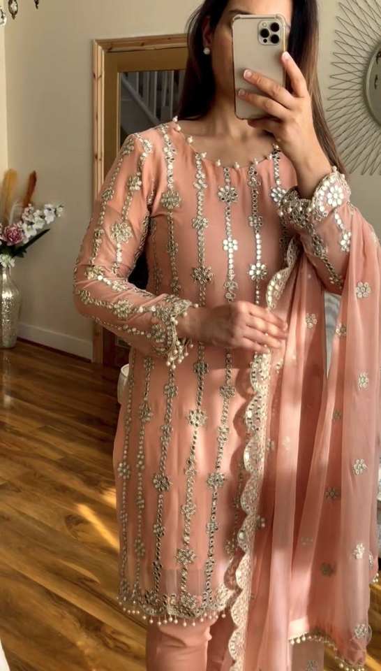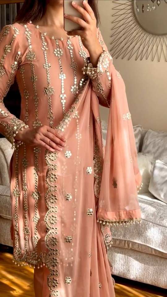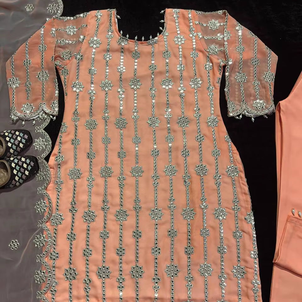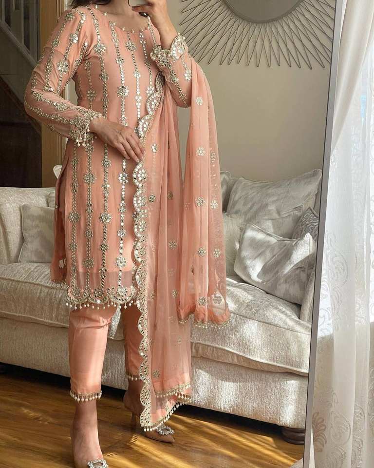 Superbe ensemble brodé de style Bollywood pour femme : haut, pantalon et dupatta en soie indienne et pakistanaise, idéal pour les fêtes, séchage rapide.