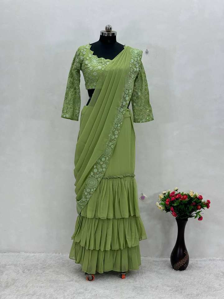 Designer traditionnel lourd fausse georgette à volants Lehenga élégant moderne vêtements de mariée détails complexes pour les fêtes