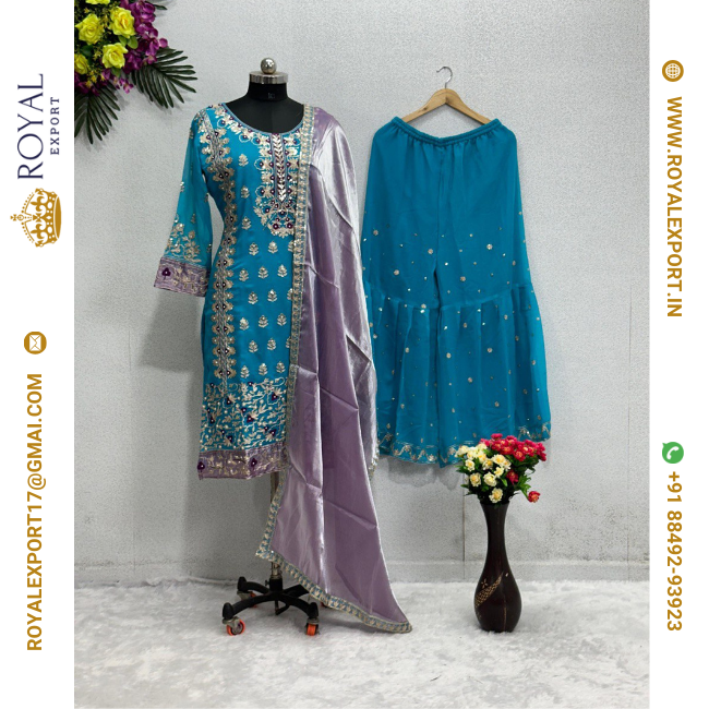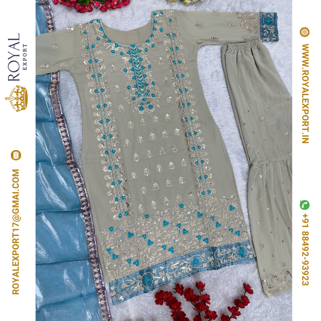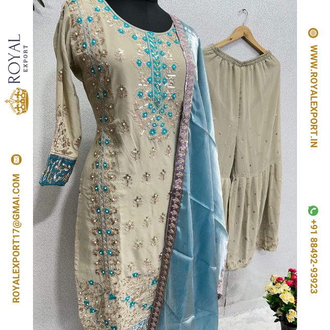 Nouvelle collection de costumes Sharara de créateur en fausse georgette lourde avec perle