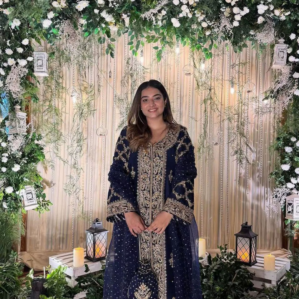 Nouveau haut et palazzo de créateur en pur georgette lourd avec broderie de sequins et de zari, et dentelle fantaisie, avec dupatta en georgette