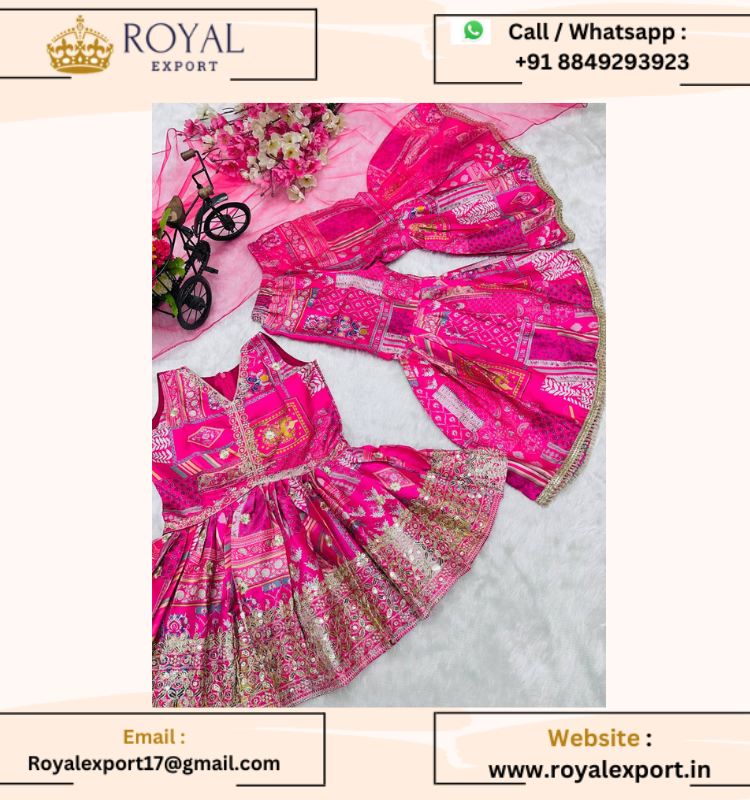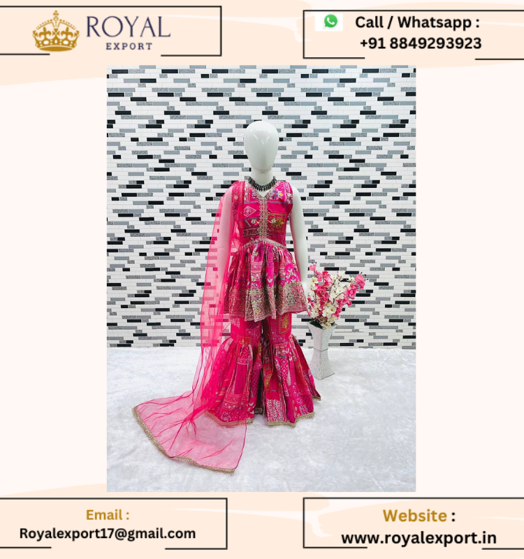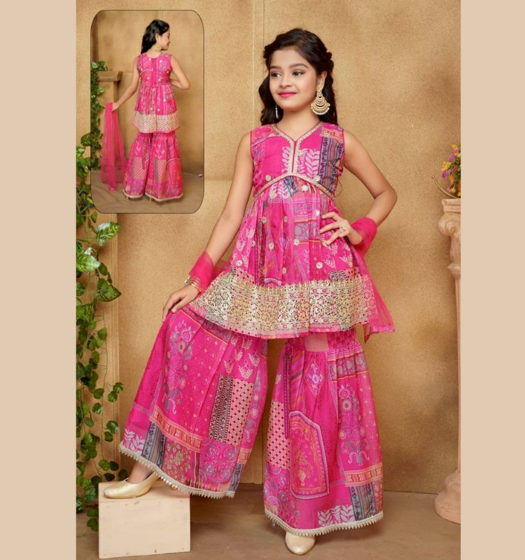 Nouveau travail de séquence lourde de concepteur avec le haut d'impression numérique et le Sarara avec Dupatta entièrement cousu pour l'enfant