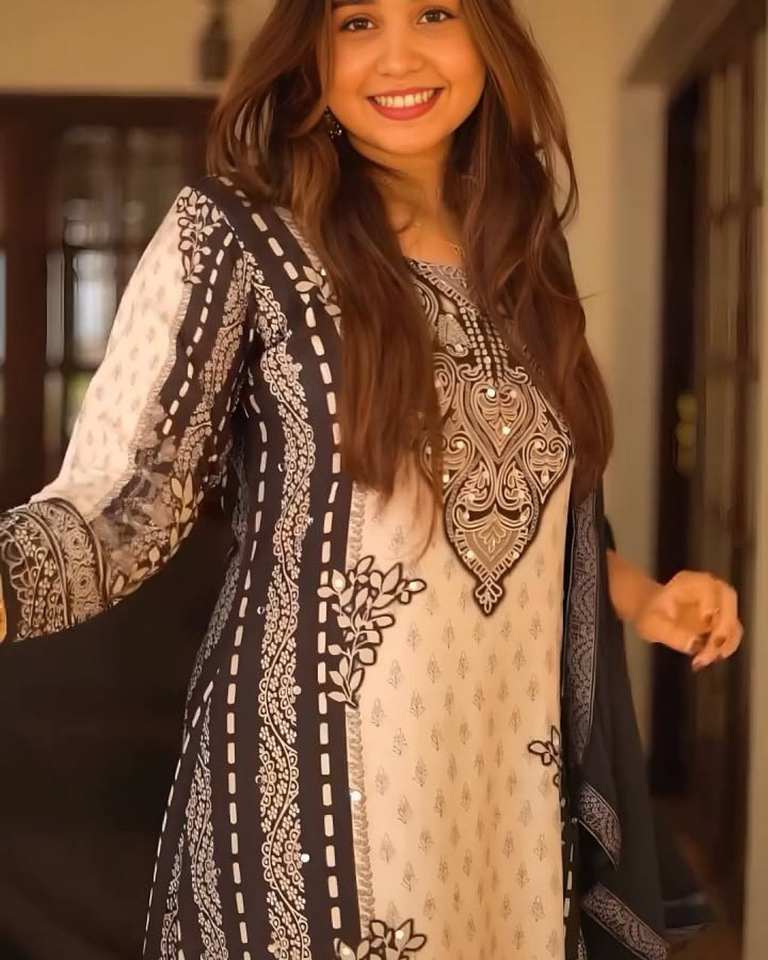 Nouveau Designer Offre Spéciale Chinon Soie Impression Numérique avec Vrai Miroir Travail À La Main Et Tentures Dentelle Bordure Top Avec Palazzo & Dupatta
