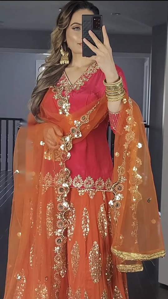 Caractéristique:Ensemble droit Kurta Sharara & Dupatta