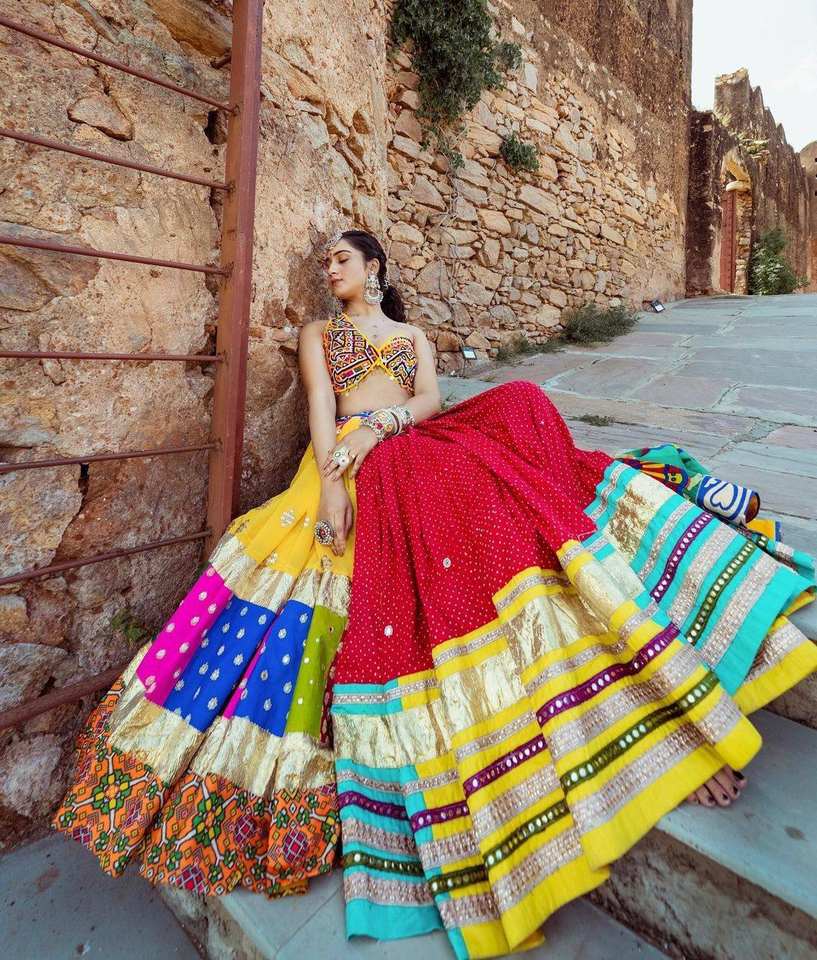 Nom du produit:Beurre Soie Impression Numérique & Miroir Travail Lehenga Choli Dupatta