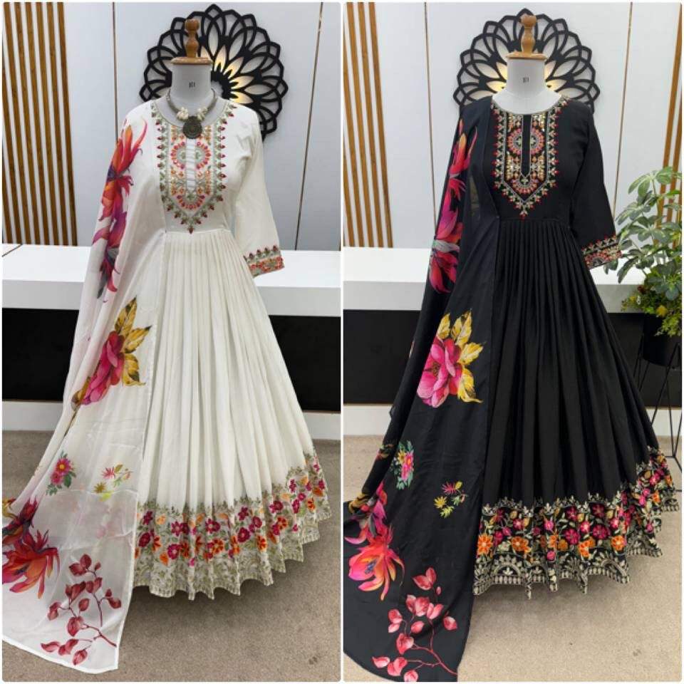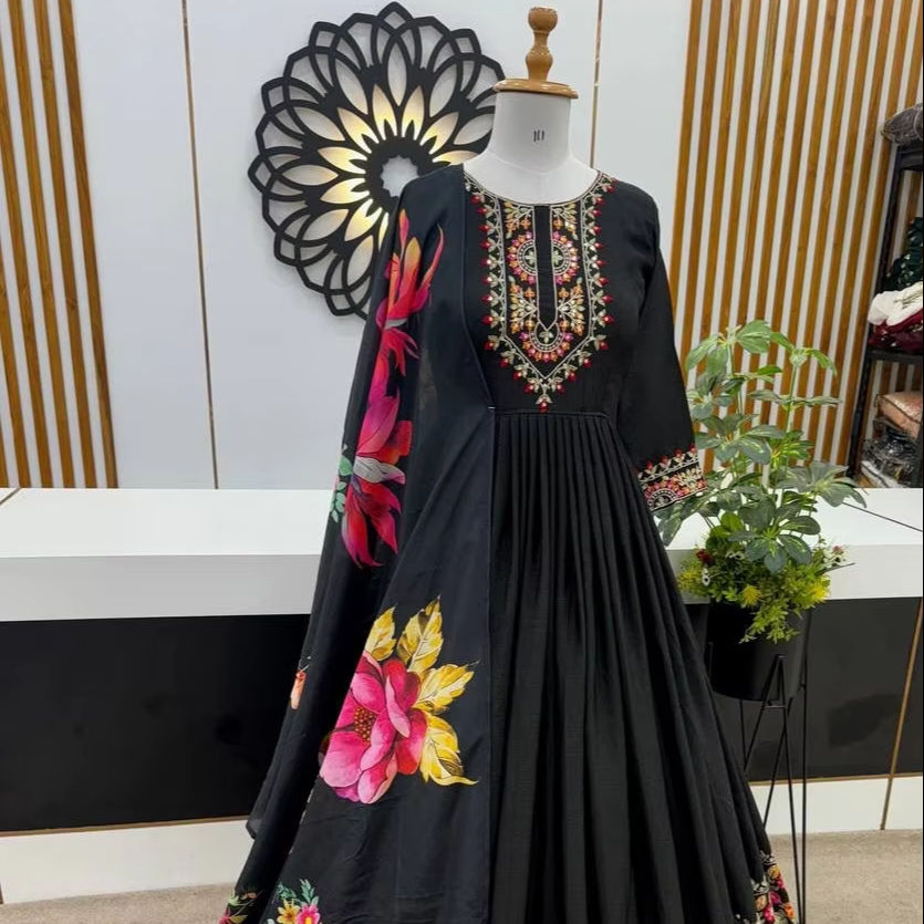 Chinon soie séquence broderie robe bas et imprimé Dupatta