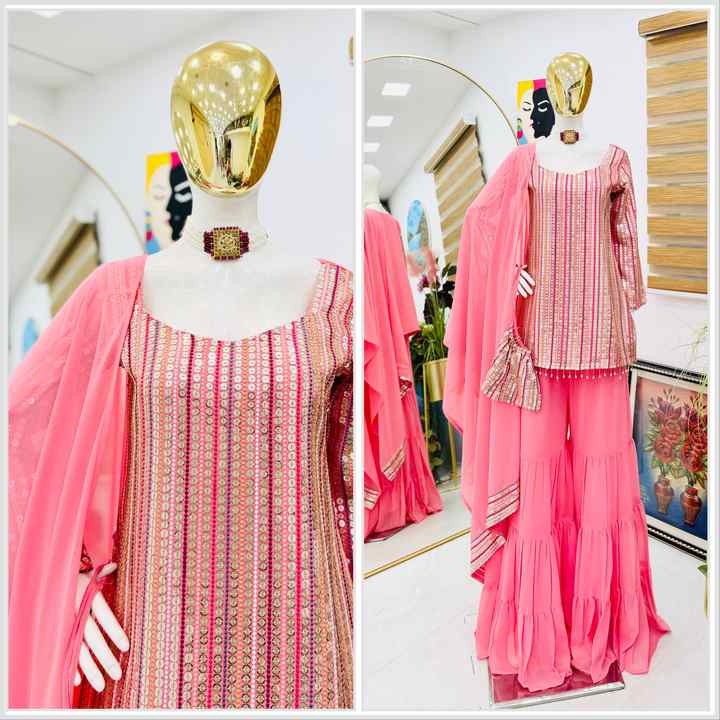 Nouvel ensemble Sharara et Dupatta pour femmes, haut en georgette de soirée de créateur, broderie de sequins Hevy Fox