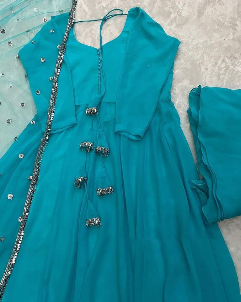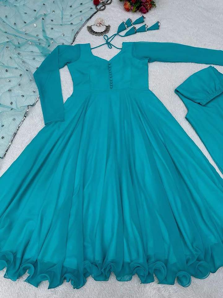 Nouveau look de robe de soirée en fausse georgette avec vêtements ethniques indiens Dupatta magnifique robe de mariée personnalisée