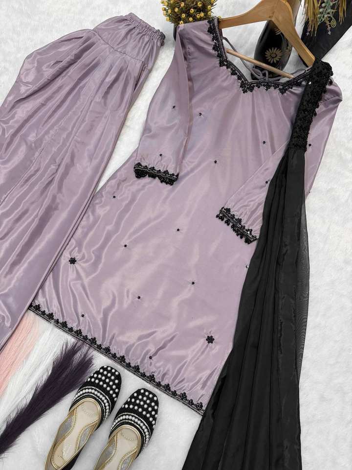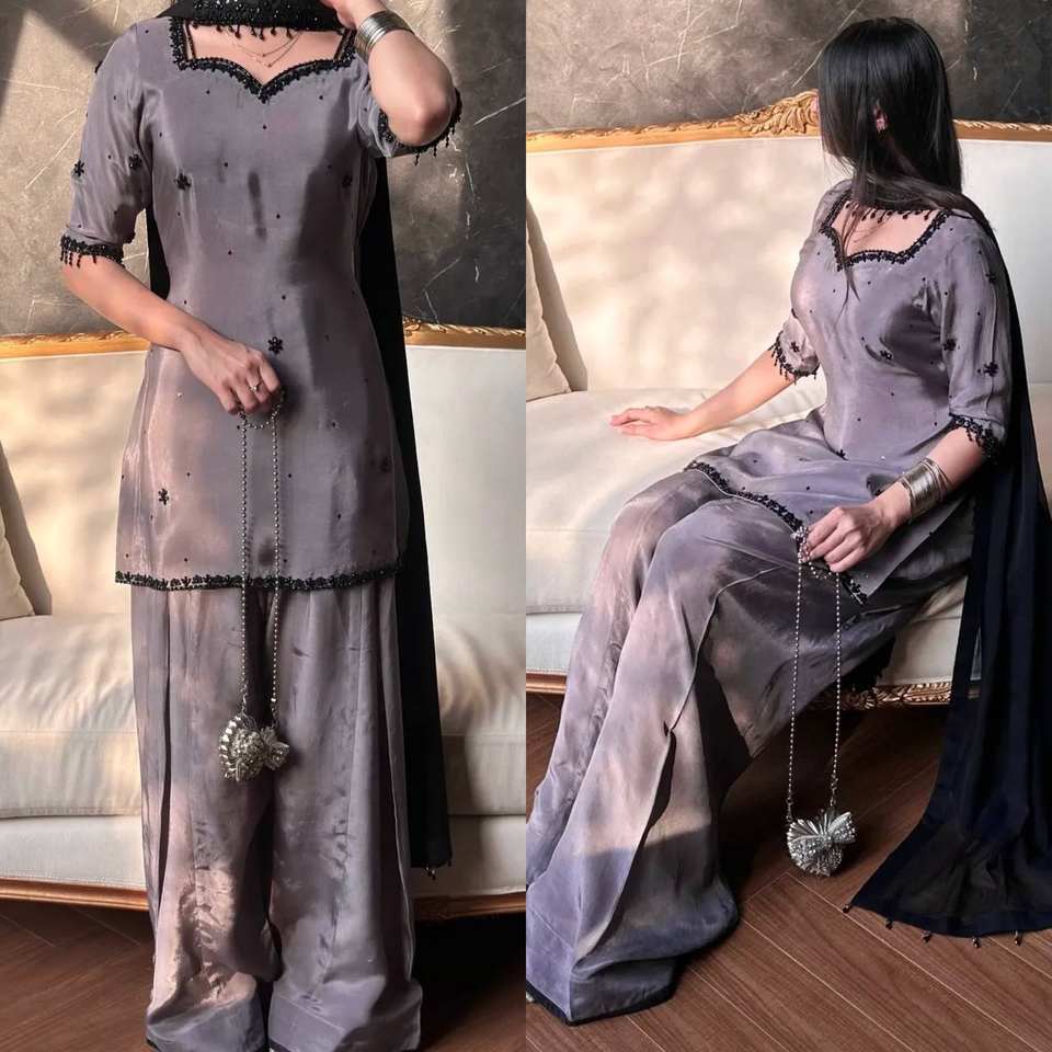 Nouvelle tenue de soirée de créateur, haut en soie crêpe naturelle lourde avec salwar farshi.