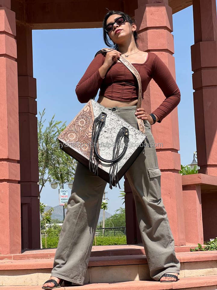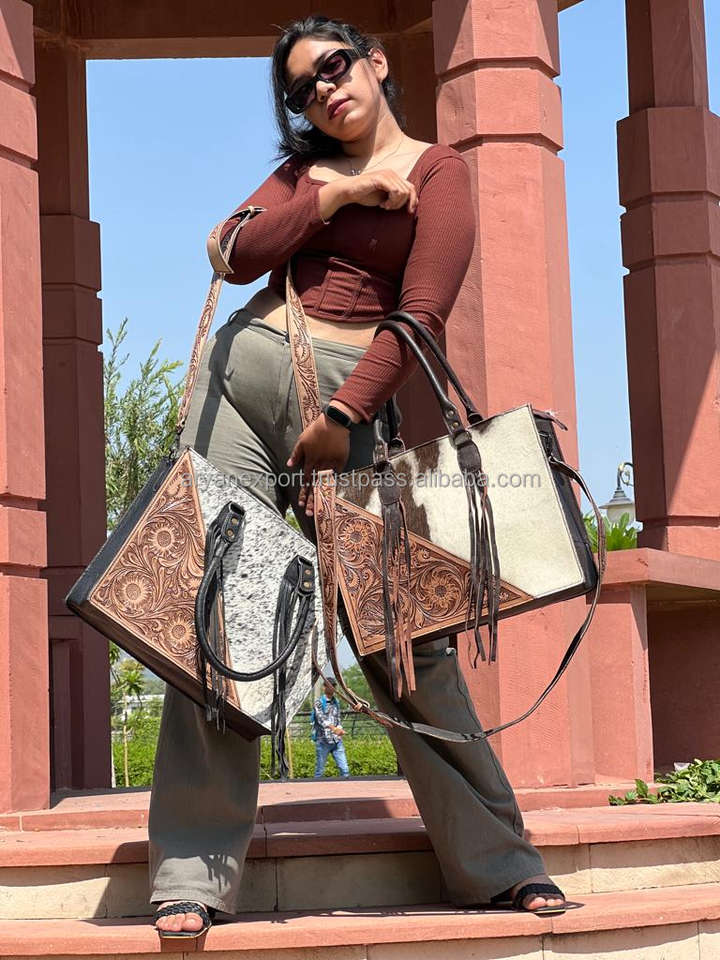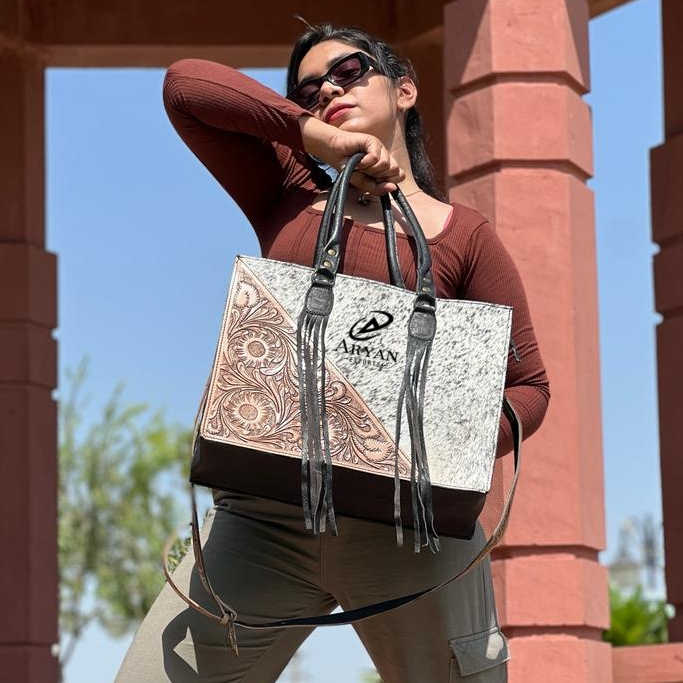 Type:Trendy Tooled Leather Tassel Tote Bag