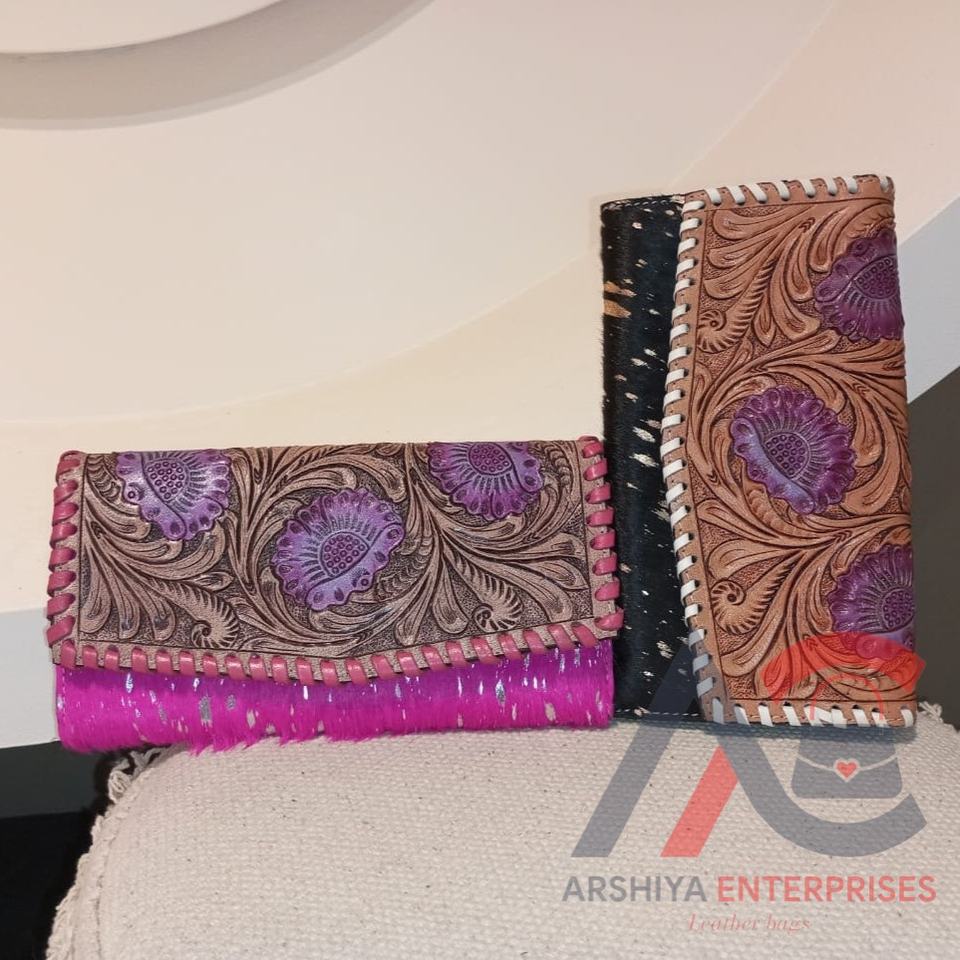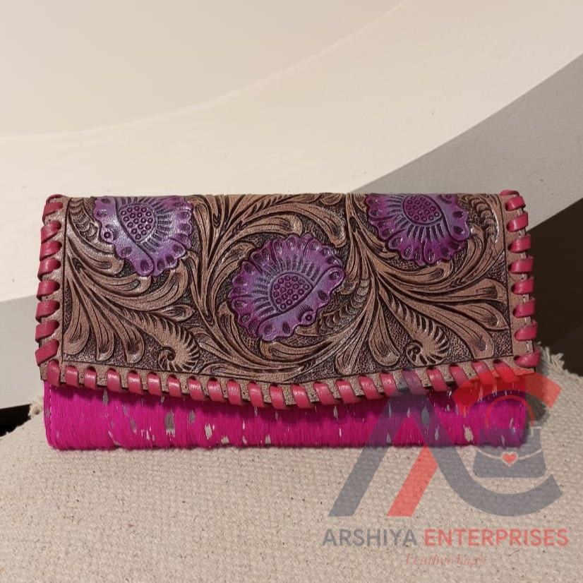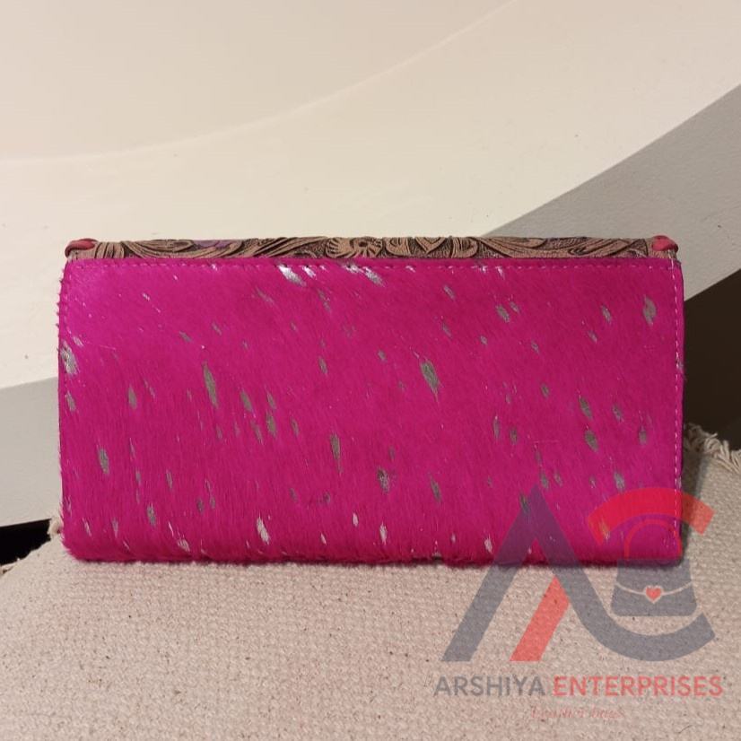 Tooled Metallic Fur Leather Wallet