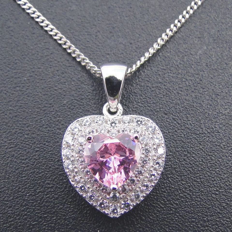 Nouveaux modèles Pendentif en argent sterling 925 en forme de cœur avec zircon rose pour femme