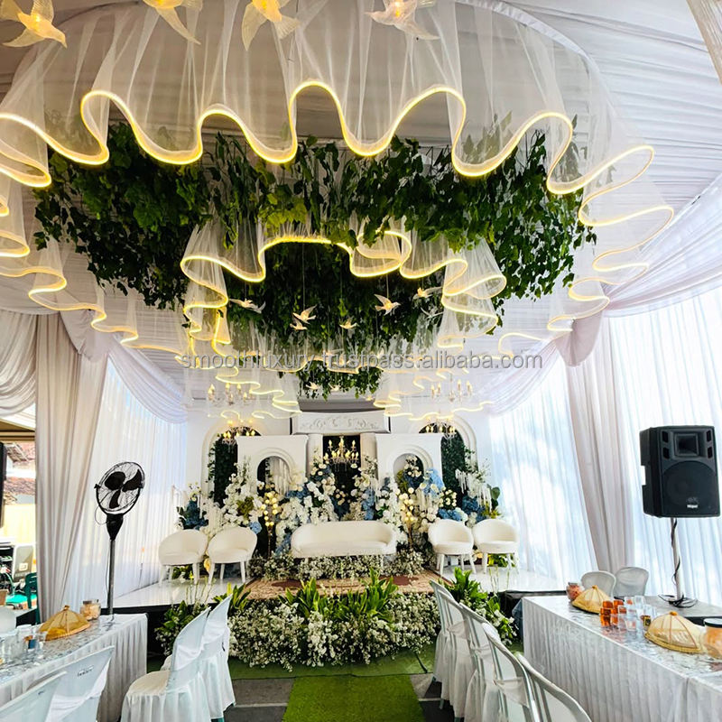 Mots-clés du produit:Le plafond accrochant blanc drape la lumière menée par tissu d'événement