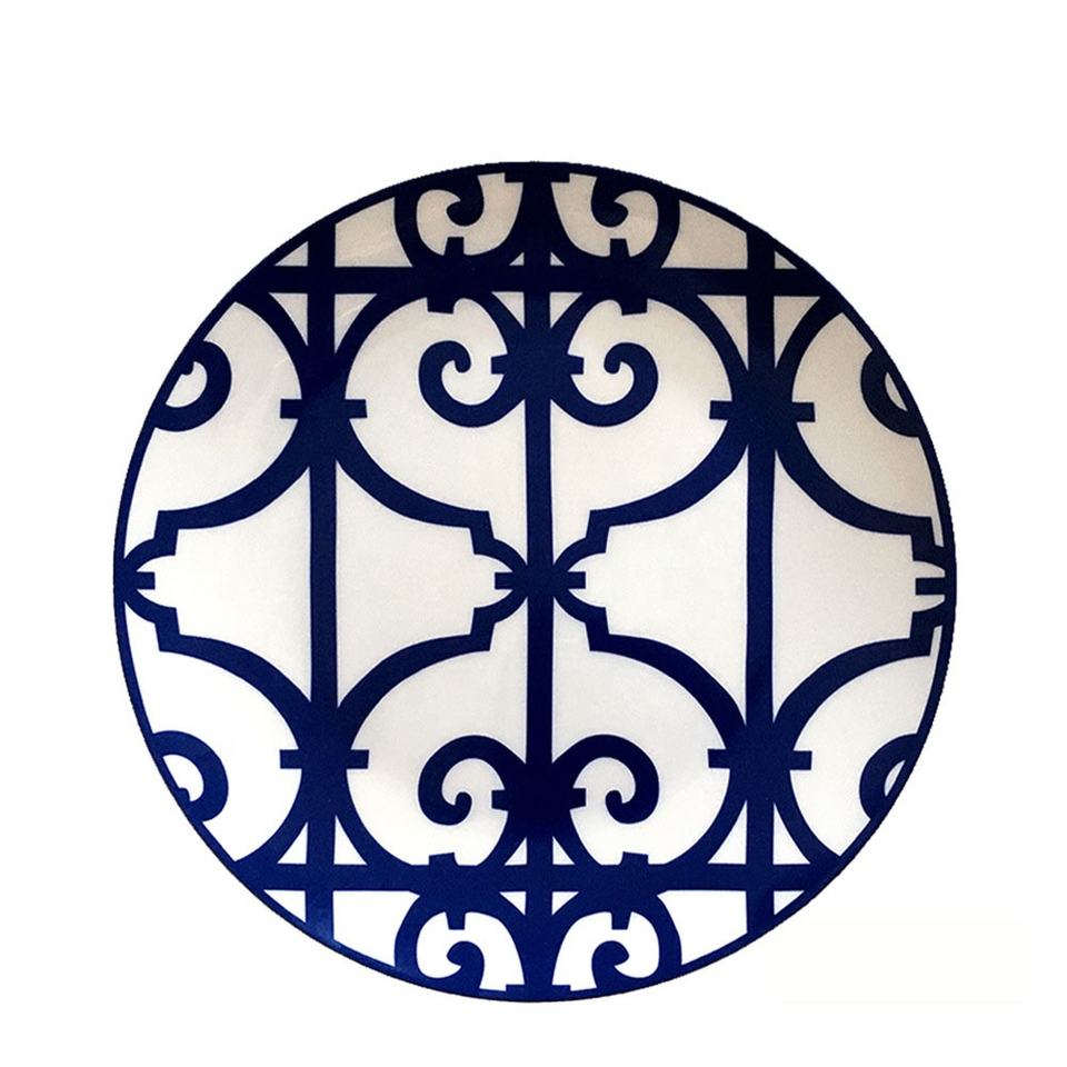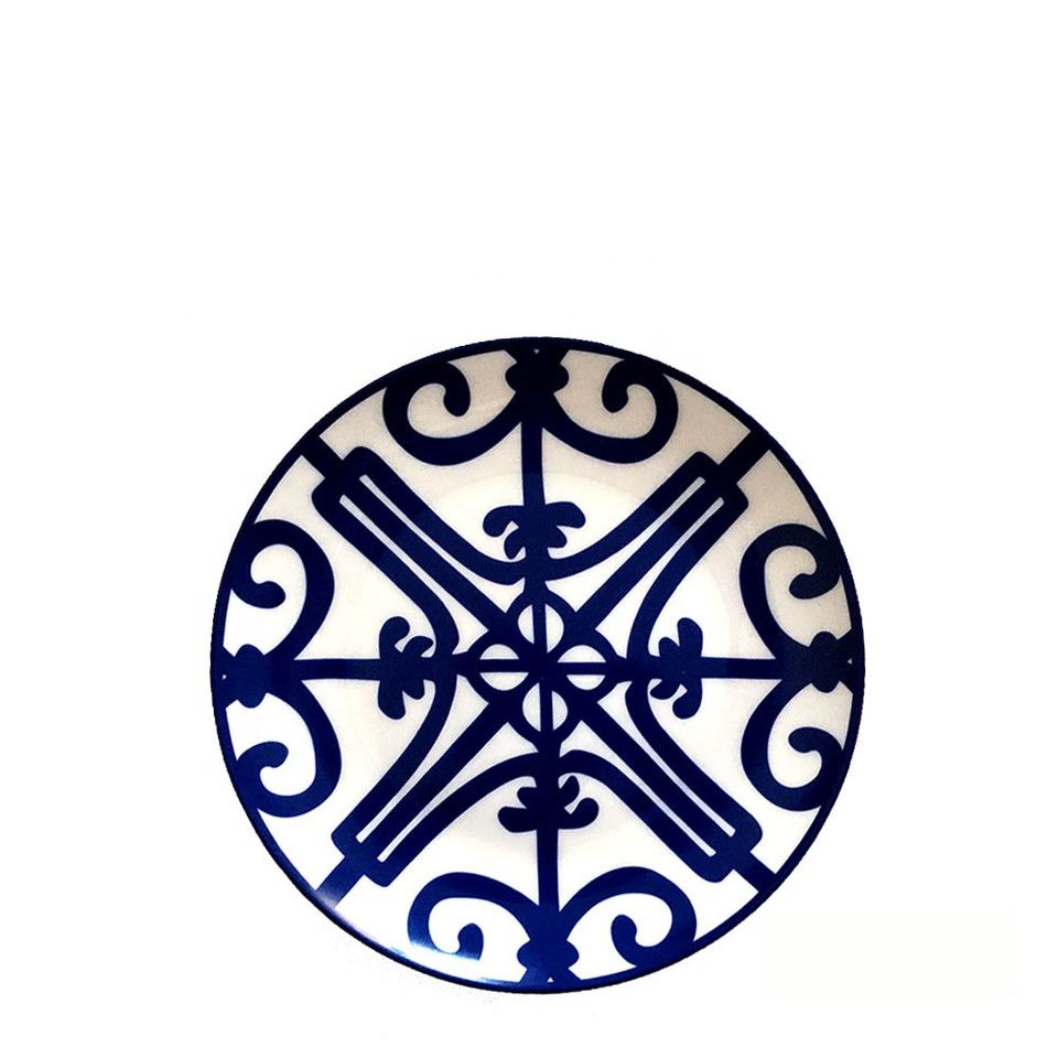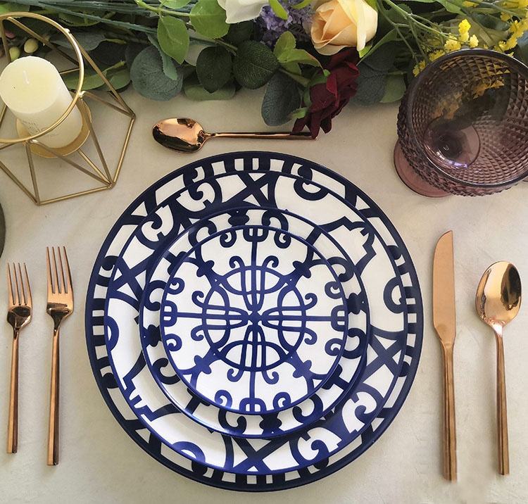 Nouveaux modèles d'assiettes en céramique de mariage ensemble de couverts design en fer forgé bleu vaisselle d'antiquités en porcelaine de luxe légère de haute qualité