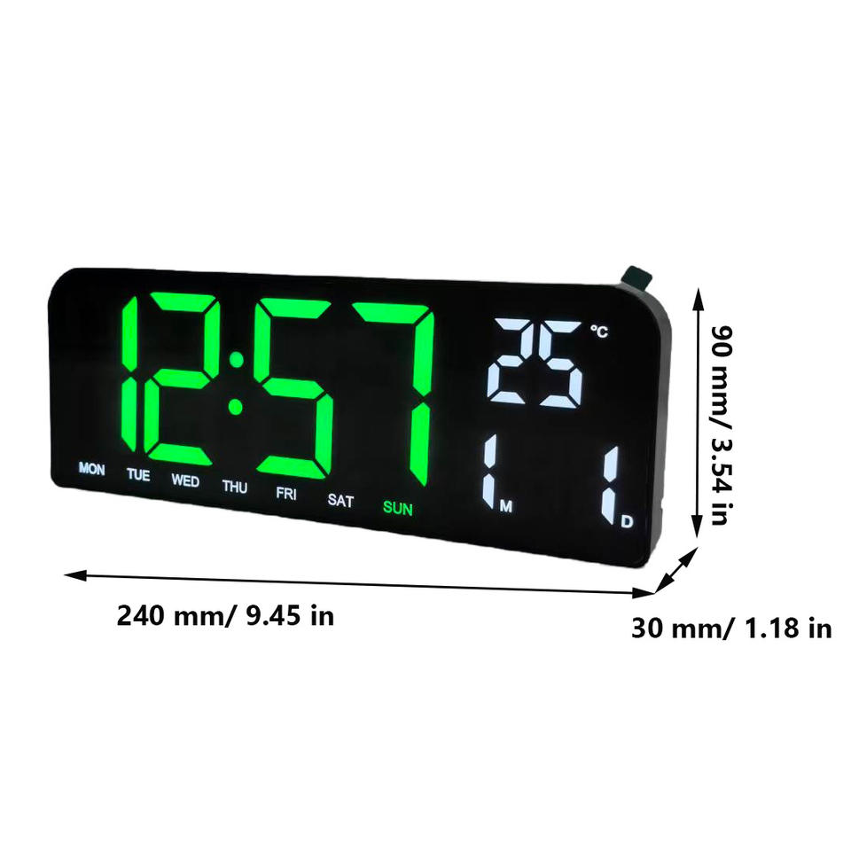 Nouvelle horloge murale numérique LED moderne avec affichage de l'heure, de la date, du jour de la semaine, grand écran, température, compte à rebours, fonction snooze pour la décoration de la maison