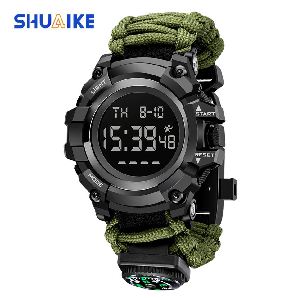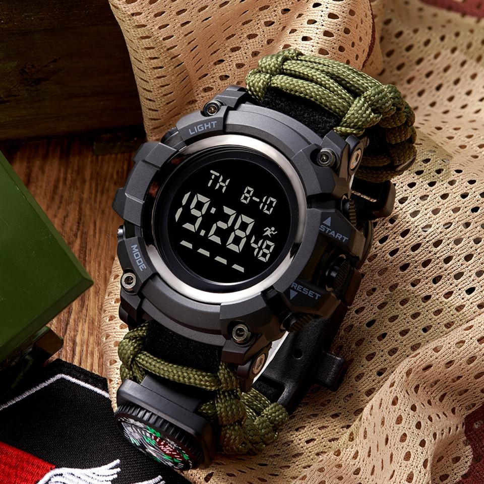 Nouvelle montre numérique à boussole, chronographe, multifonction, montre LED pour étudiants, montre de sport de plein air, camouflage, mode, montre électronique pour hommes