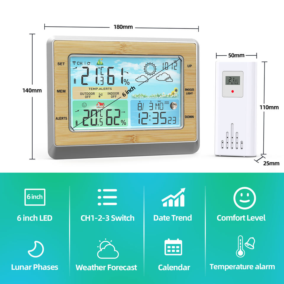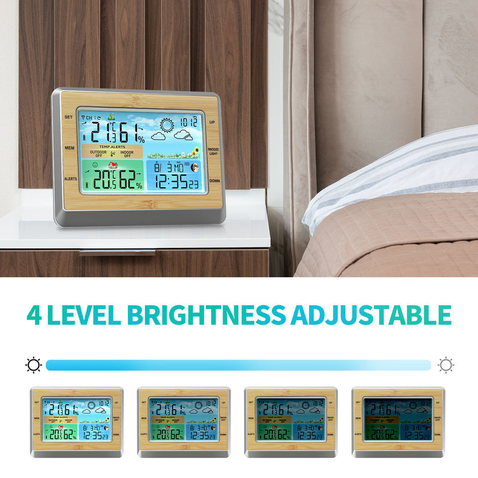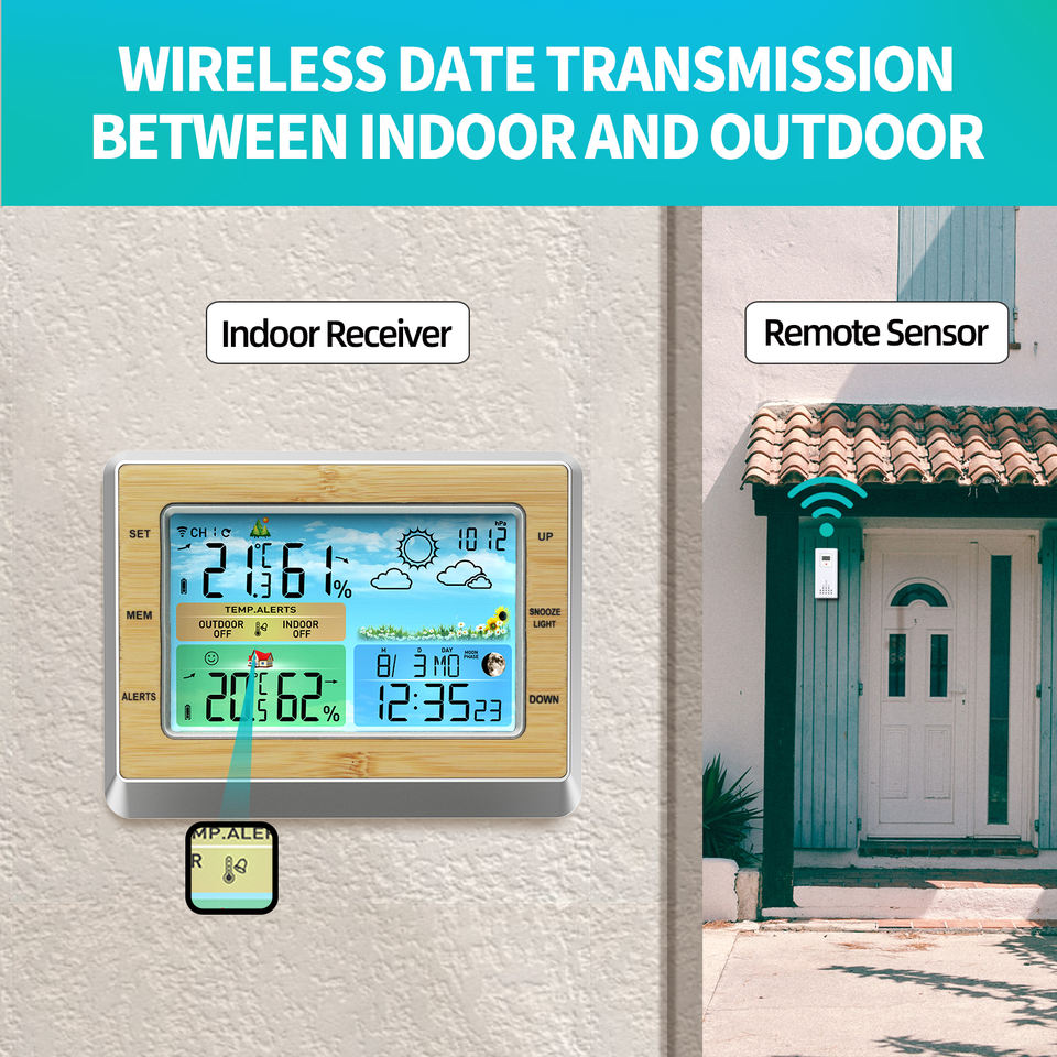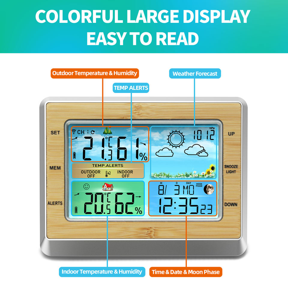 Nouvelle station météo numérique sans fil intérieure/extérieure, horloge domestique avec thermomètre et hygromètre, prévisions météo couleur