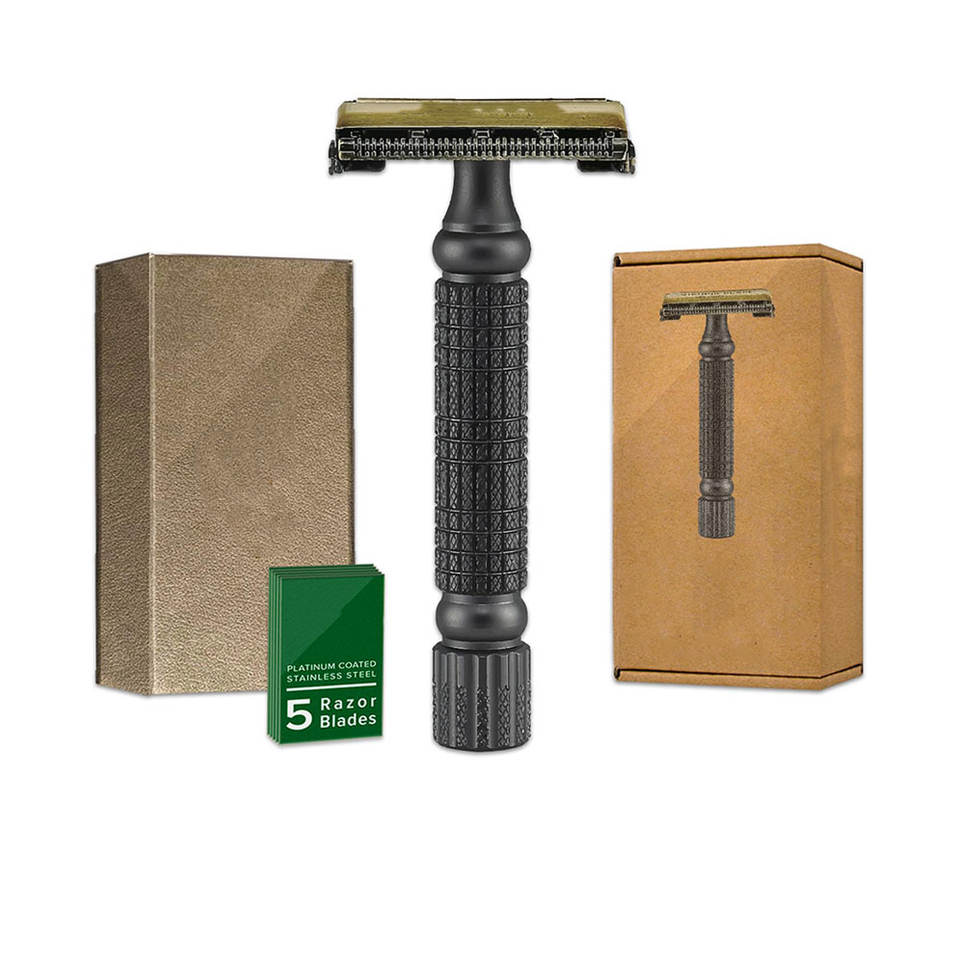 Nouveau rasoir de sécurité personnel à double tranchant jetable en laiton rasage en acier inoxydable lame remplaçable pour le visage sous les bras manche en bois