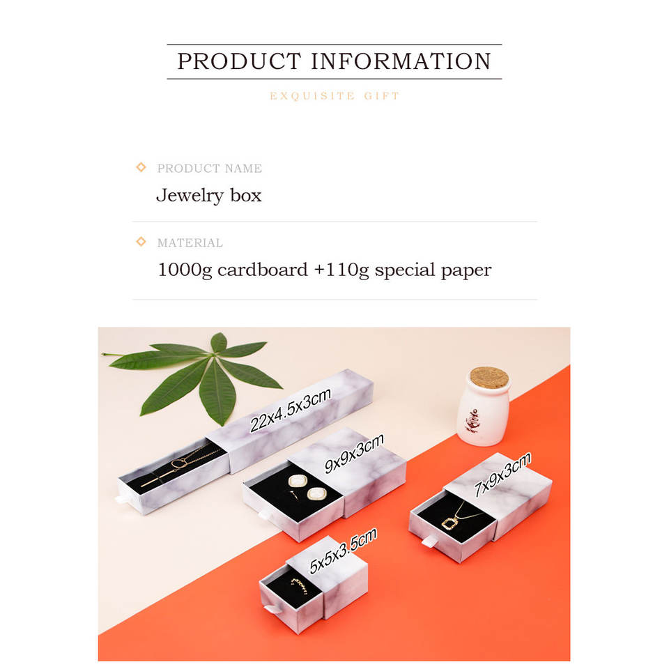 Nouveau tiroir boîte bijoux marbre boîte à bijoux bijoux noir emballage anneau boucle d'oreille pendentif collier Bracelet boîte de rangement