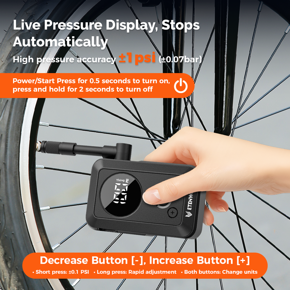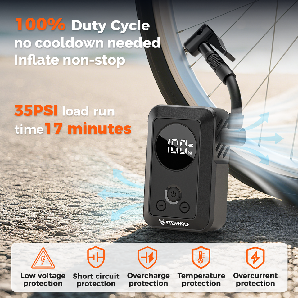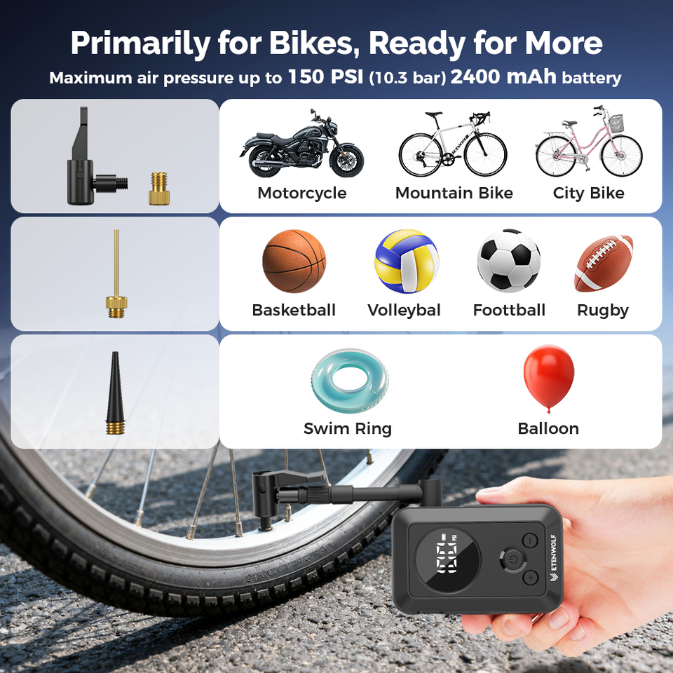 Nouvelle pompe à air sans fil ETENWOLF S0 avec affichage numérique et gonflage rapide 150 PSI, batterie 2400 mAh, noire, pour vélos, pneus de voiture et ballons