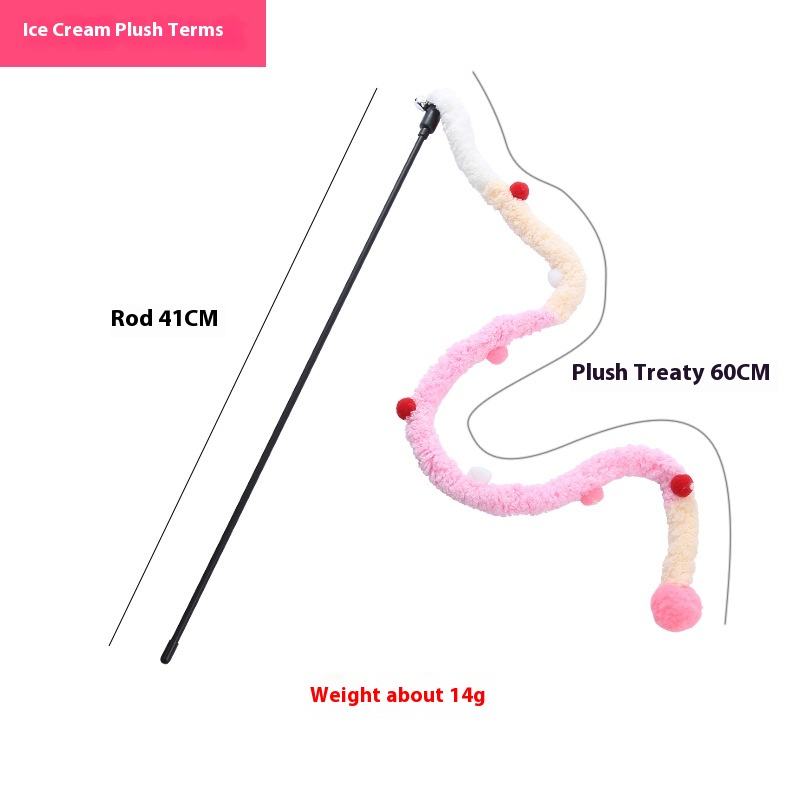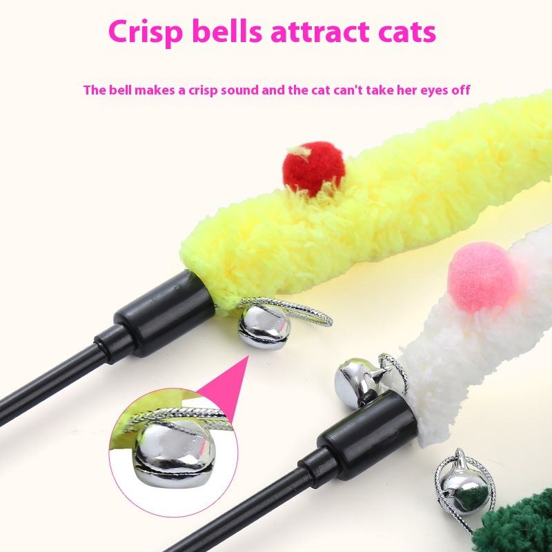 New Eco-Friendly Interactive Cat Toy Colorful Plush Strip Tease Cat Stick with Bell Wood Material for Dogs